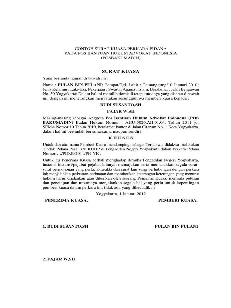 Doc Contoh Surat Kuasa Pidana Qamaruddin Maslem Academia Edu