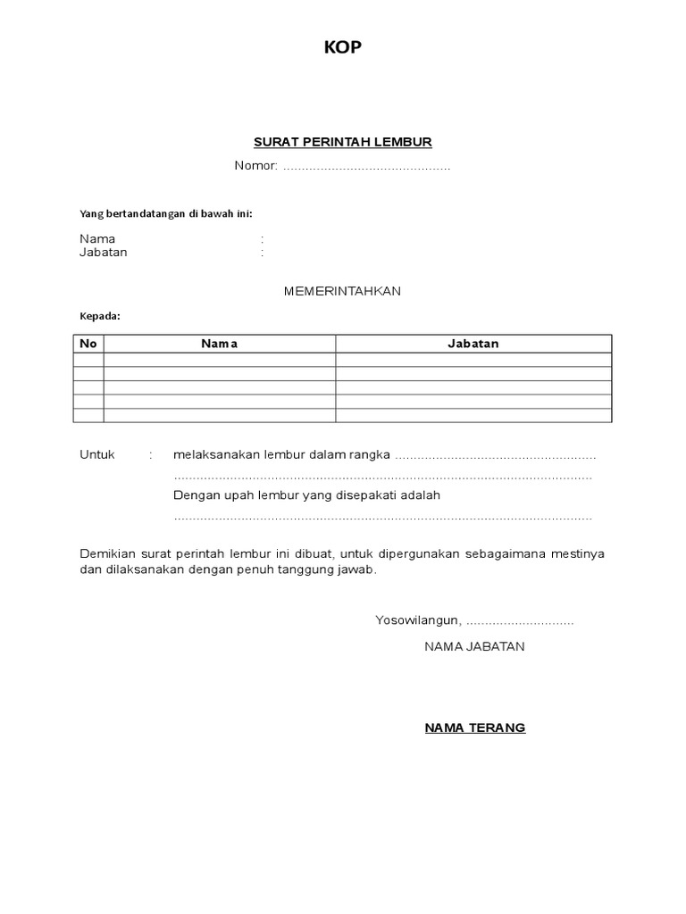 Contoh Surat Perintah Lembur Word