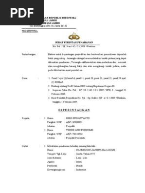 Surat perintah penahanan no. Bahwa berdasarkan hasil pemeriksaan dan penyelidikan sementara diperoleh bukti yang cukup tersangka diduga keras telah. Dengan hormat bertindak untuk dan atas nama. Pada dasarnya surat tugas tidak berbeda jauh dengan surat perintah yang sama sama berisikan perintah penugasan kerja.