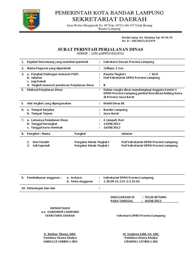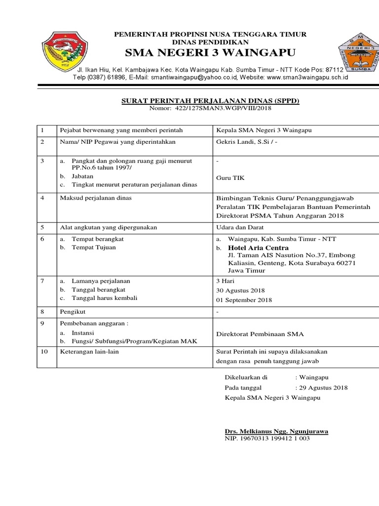 Inilah Pola Surat Perintah Perjalanan Dinas Sppd Kepala Desa Terbaru Lamaran Kerja Bahasa Inggris