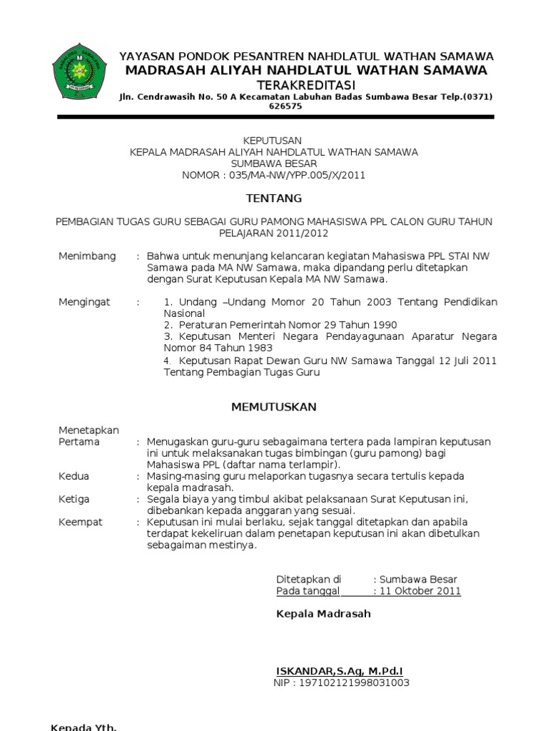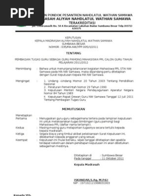 Surat keputusan sk materi pembekalan plpbd download kontak sk guru pamong ppl real semester ganjil tahun 2019 publikasi oleh putu hery suwitro pada 30 september 2019. Program ini memberikan kesempatan kepada mahasiswa calon guru untuk mengenal dunia keguruan secara nyata sebelum mereka benar benar terjun di dalamnya. Program pengalaman lapangan ppl merupakan tahapan penting bagi calon guru yang saat ini masih berstatus mahasiswa. Untuk keperluan kegiatan tersebut dimohon kiranya bapak ibu menunjuk 2 dua orang guru sebagai guru pamong yang sesuai dengan kualifikasi untuk selanjutnya dibuat surat keputusan rektor.