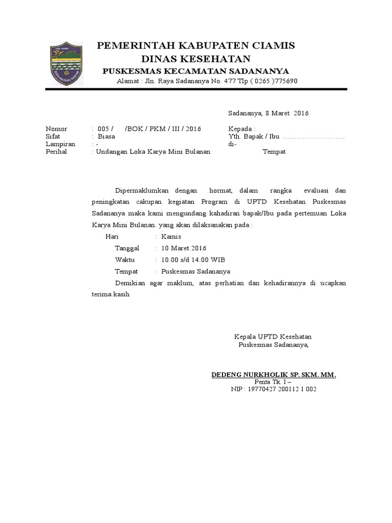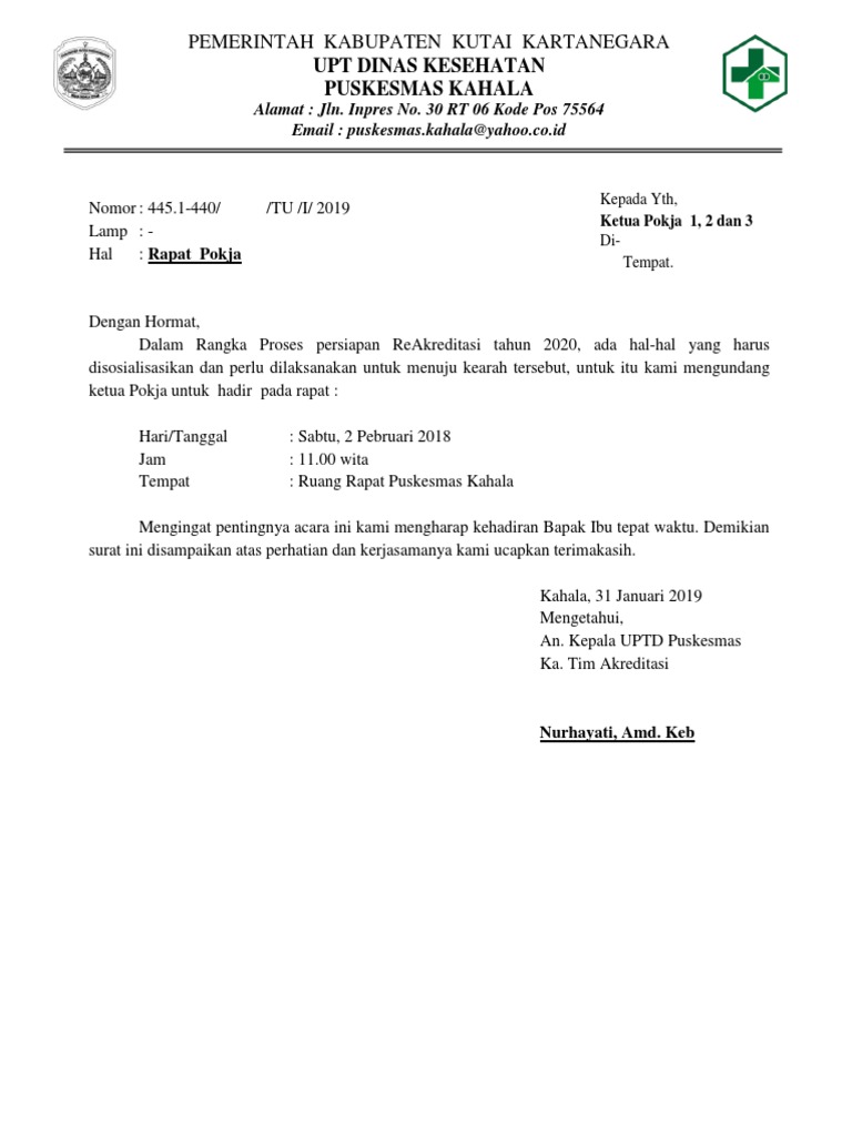 Contoh Surat Undangan Rapat Dinas Kesehatan