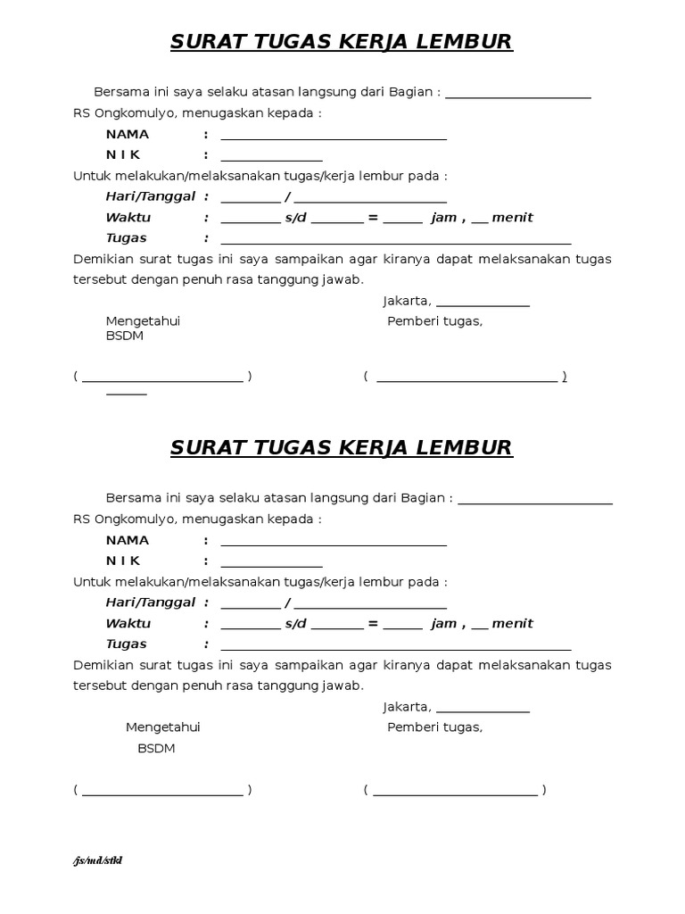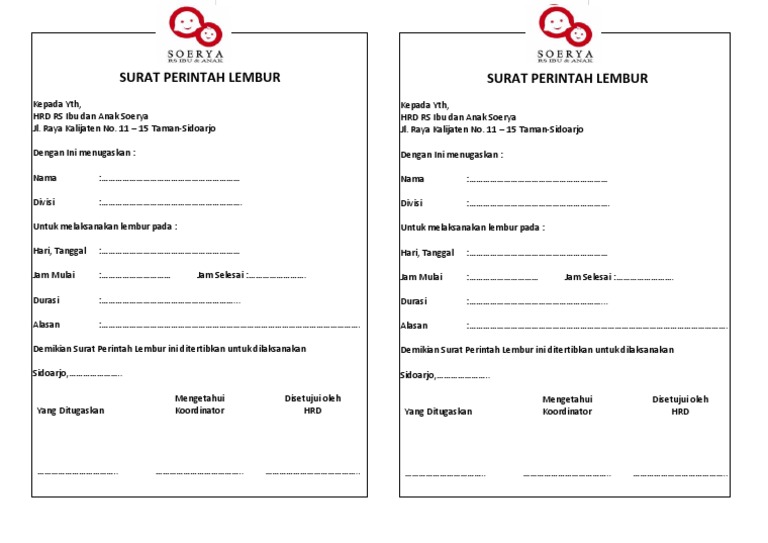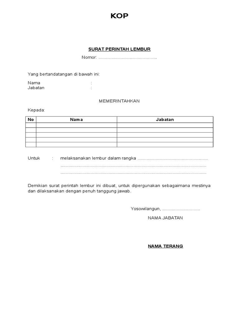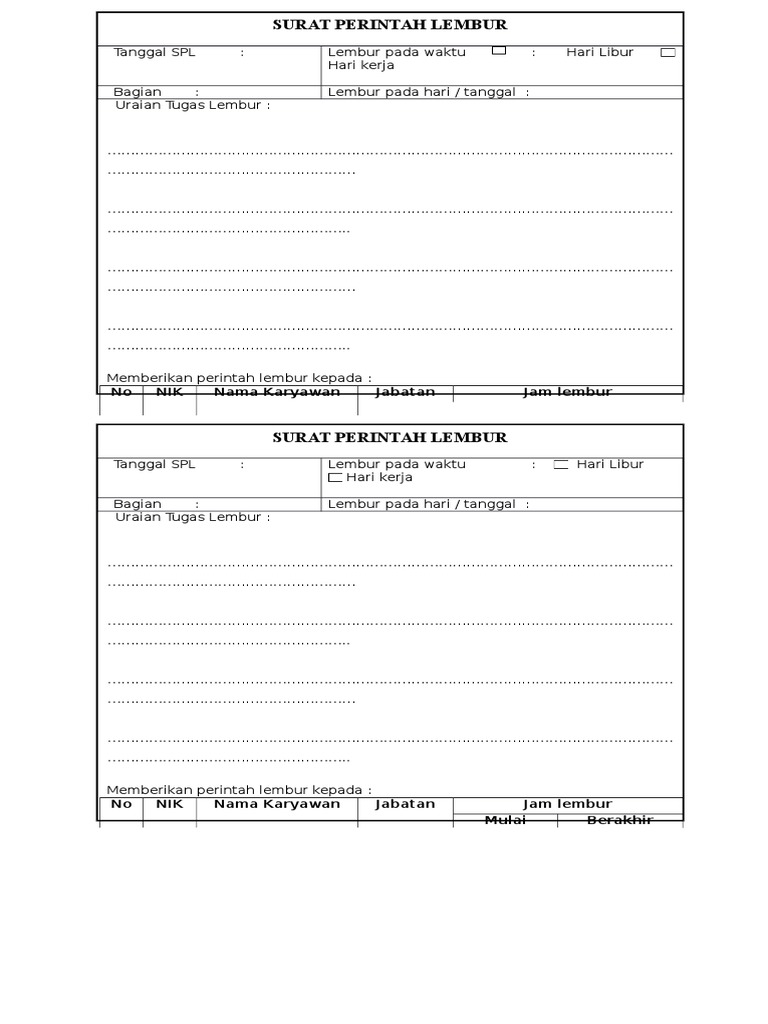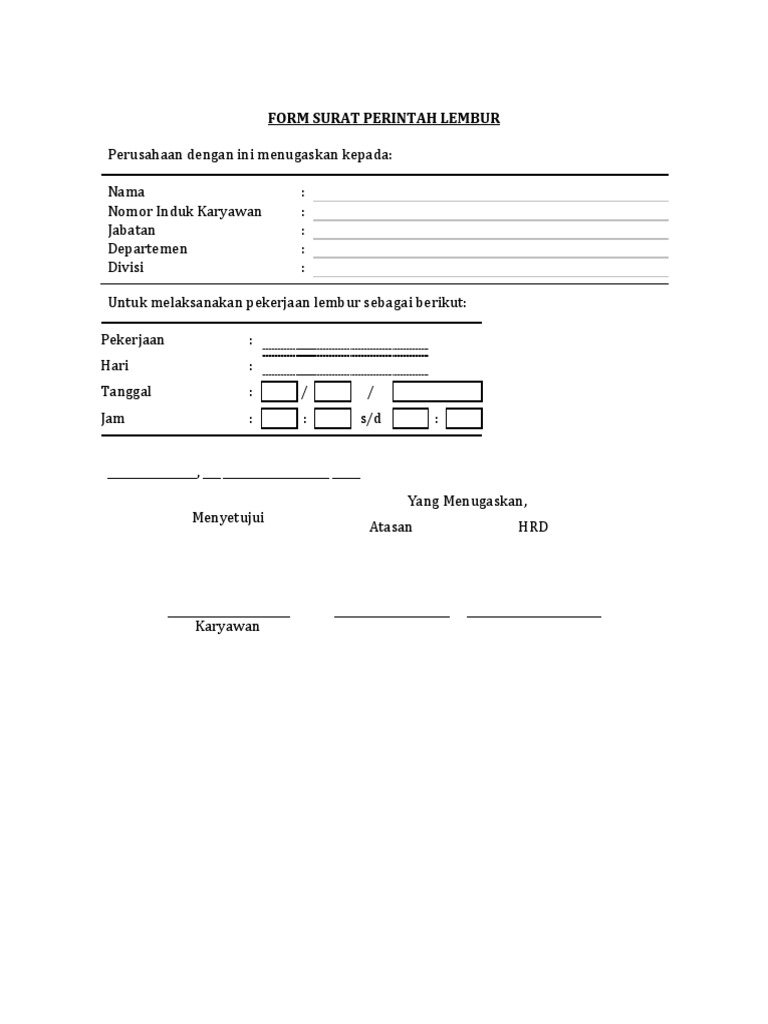Download form surat perintah lembur artikel terkait search for. Surat perintah lembur tidak boleh dianggap remeh karena ini adalah salah satu proses administrasi penting sebelum karyawan dapat lembur berikut ini cara membuat surat perintah lembur beserta contohnya lembur. Pelaksanaan lembur tentu saja sesuai dengan surat perintah atau yang tercantum didalam form yang telah disetujui. Jasa desain surat lamaran kerja info detail hubungi wa 085852316552 total tayangan halaman gratis gratis ebook hrd dan ilmu pengembangan diri free member kelas online young hrd practitioner dan.
