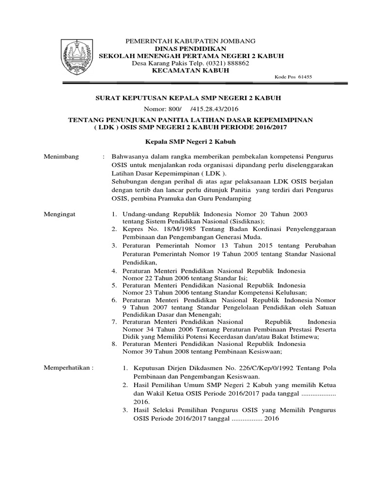 Contoh Sk Osis Smp Guru Ilmu Sosial