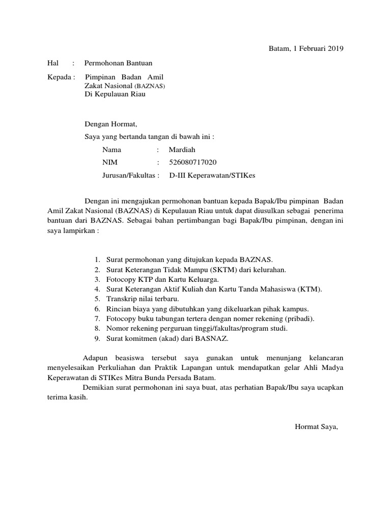 Penerima Beasiswa Surat Permohonan Bantuan Beasiswa Baznas