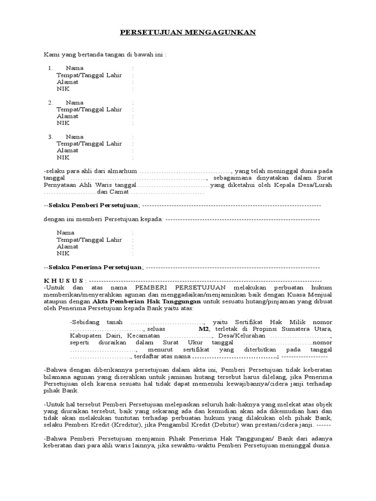 Contoh surat kuasa jaminan sertifikat tanah lengkap dan terbaru apa anda ingin mengajukan pinjaman dengan nama orang lain teman saudara ataupun orang tua ke bank maka di butuhkan beberapa surat kuasa yang telah kami. Baca bisanya 3 7 hari kerja setelah survey kur bri cair kok. Surat ahli waris untuk bank termasuk ke dalam jenis surat kuasa. Apabila ingin melakukan pengajuan ke bank hal yang harus dilakukan adalah mengajukan pembuktian kesediaan ahli waris untuk menggadaikan surat tanah tersebut.