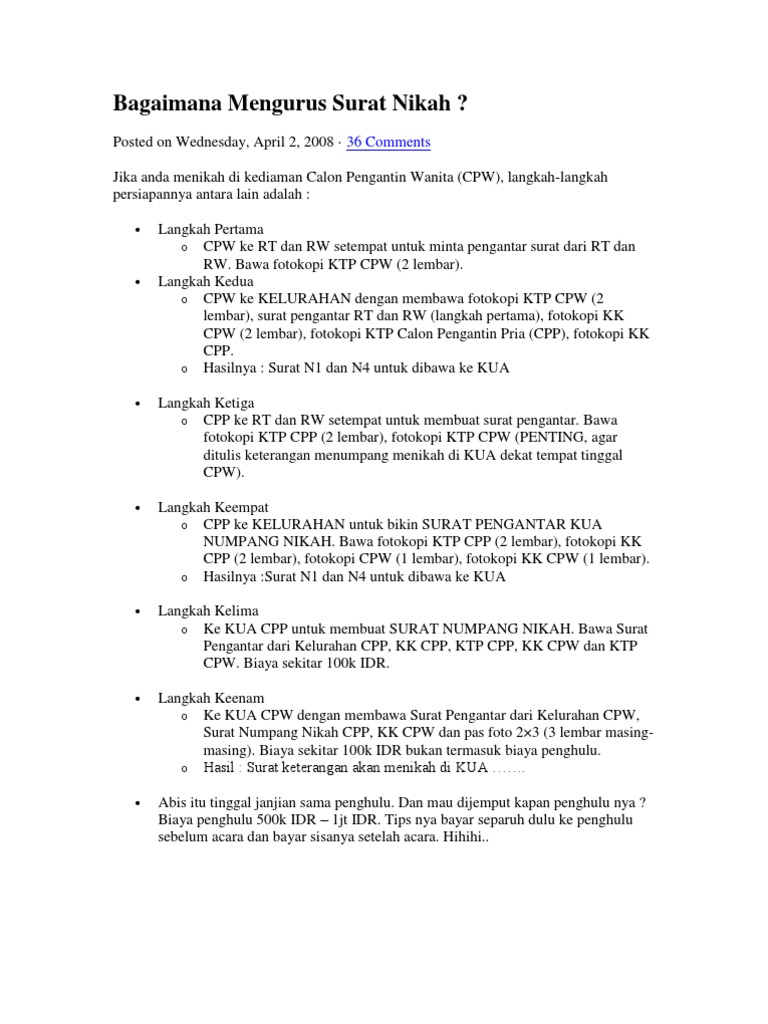 Nantinya kalian akan mengisi beberapa formulir resmi yaitu n1 n2 n4 dan surat keterangan belum menikah. Minta surat pengantar dari rt dan rw setempat dengan membawa. Setelah mendapatkan pengantar dari ketua rt dan rw sambil juga melengkapinya dengan fotokopi ktp dan kk maka anda bisa meminta surat numpang nikah ke kelurahan. Maka langkah awal yang harus kita lakukan yaitu mengurus atau meminta surat pengantar atau keterangan terlebih dahulu dari ketua rt setempat.