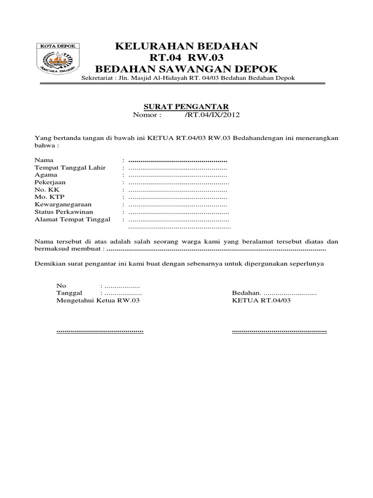 Surat pengantar rt docx. Mengenai surat pengantar surat ini memiliki peranan penting di dalamnya. Selanjutnya utarakan maksud anda untuk dibuatkan surat pengantar untuk mengurus sku. Untuk itu anda harus spesifikkan kebutuhan surat pengantar seperti apa yang anda butuhkan. Surat pengantar rt rw b.