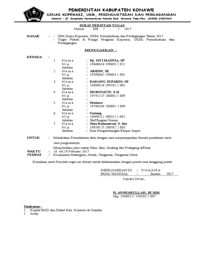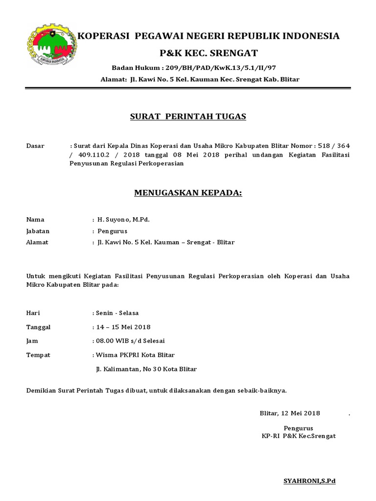 Yang membedakan surat tugas dengan surat resmi lainnya ada di bagian isi bahwa dalam surat tugas dinas harus ada identitas pemberi wewenang atau pejabat atasan identitas pegawai serta instansi yang dituju. Contoh surat tugas surat perintah tugas terima kasih kepada para pembaca yang telah mengunjungi situs kami. Surat perintah tugas dinas seringkali dipergunakan oleh berbagai pihak instansi dan juga lembaga pemerintahan. Surat tugas ini bisa diartikan sebagai surat yang dikeluarkan oleh instansi tertentu atau pihak yang lebih tinggi dan ditujukan kepada bawahannya untuk melaksanakan sebuah tugas 15 contoh surat tugas resmi yang baik dan paling lengkap salah satu jenis surat yang sangat sering digunakan oleh perusahaan maupun instansi tertentu adalah surat tugas.