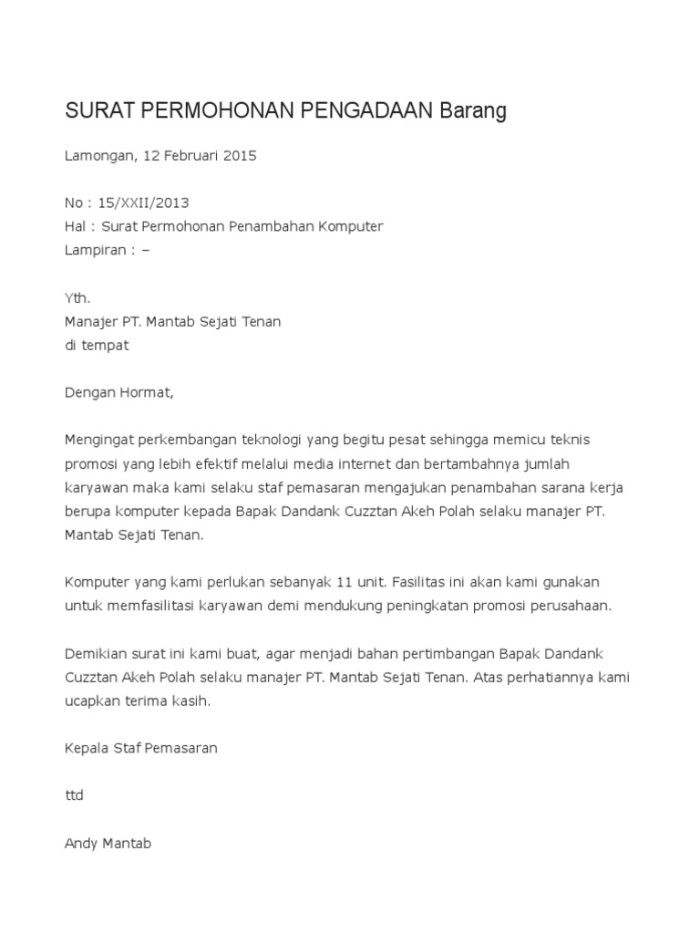 Documents Tips Surat Permintaan Pengadaan Barang Doc Doc