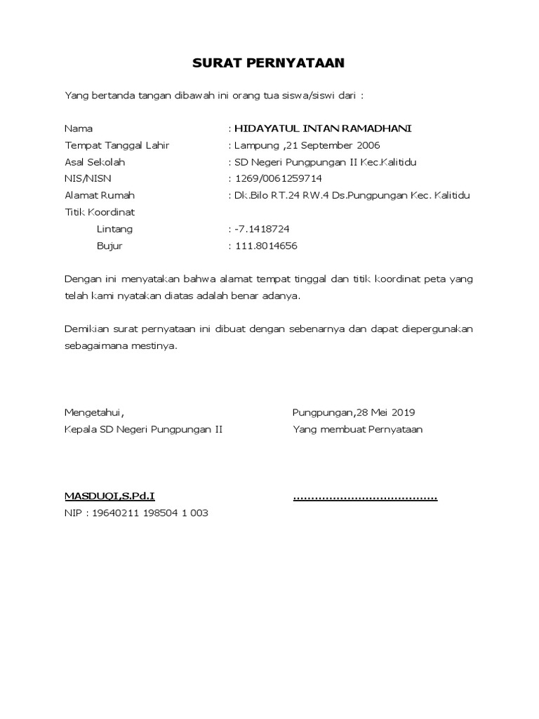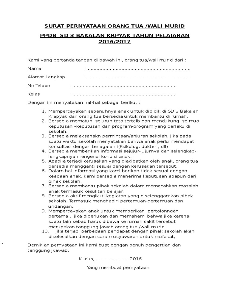 Surat Pernyataan Orang Tua Untuk Daftar Sekolah Info Pendidikan Terbaru