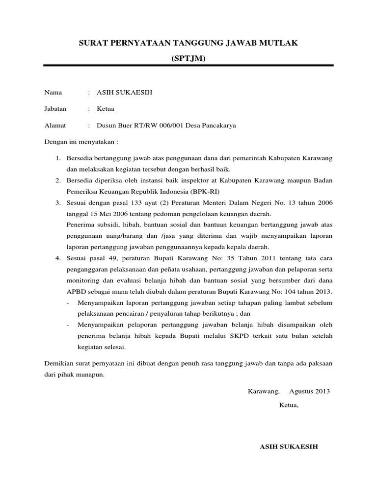 Surat pernyataan tanggung jawab mutlak sptjm. Surat pernyataan tanggung jawab mutlak sptjm orang tua wali calon peserta didik baru tahun 2020 yang bertanda tangan di bawah ini. Sptjm dapodik untuk menjamin validitas faktual data dapodik yang dikirimkan oleh sekolah melalui online ke direktorat jenderal pendidikan dasar dan menengah maka sekolah wajib mengunduh mengesahkan sekaligus menyerahkan dokumen surat pernyataan tanggung jawab mutlak sptjm bermaterai yang sudah ditandatangani kepala sekolah ke dinas pendidikan provinsi jawa barat. Direktur jenderal anggaran di jakarta yang bertanda tangan di bawah ini. Hal inilah yang.